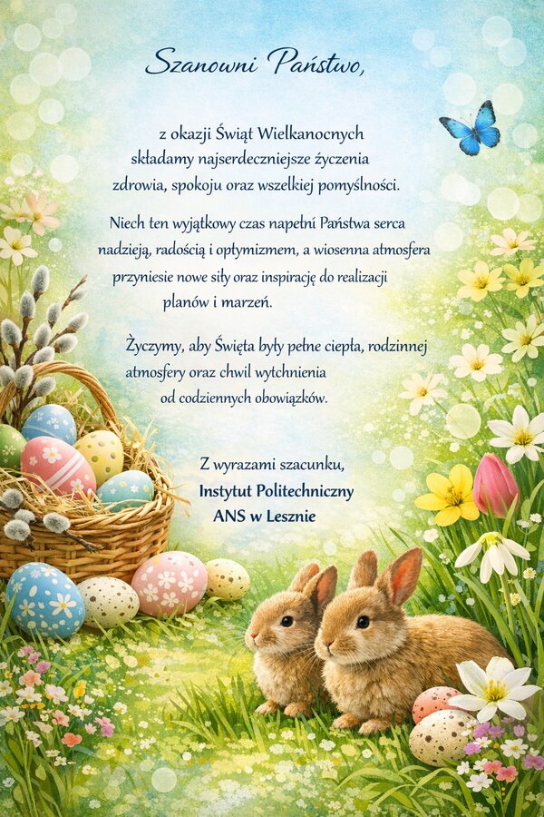 Niech ten wyjątkowy czas napełni Państwa serca nadzieją, radością i optymizmem a wiosenna atmosfera przyniesie nowe siły oraz inspirację do realizacji planów i marzeń.